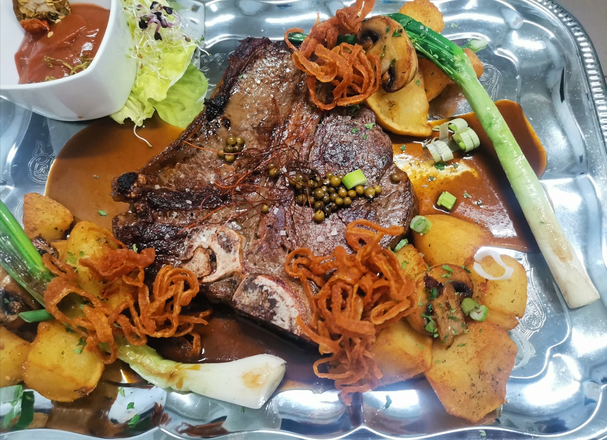 - Kemencés bőségtál: Kacsacomb kemencében sütve, Cigánypecsenye kakastaréjjal, Tökmagos csirkemell csíkok, Rántott karfiol és gomba