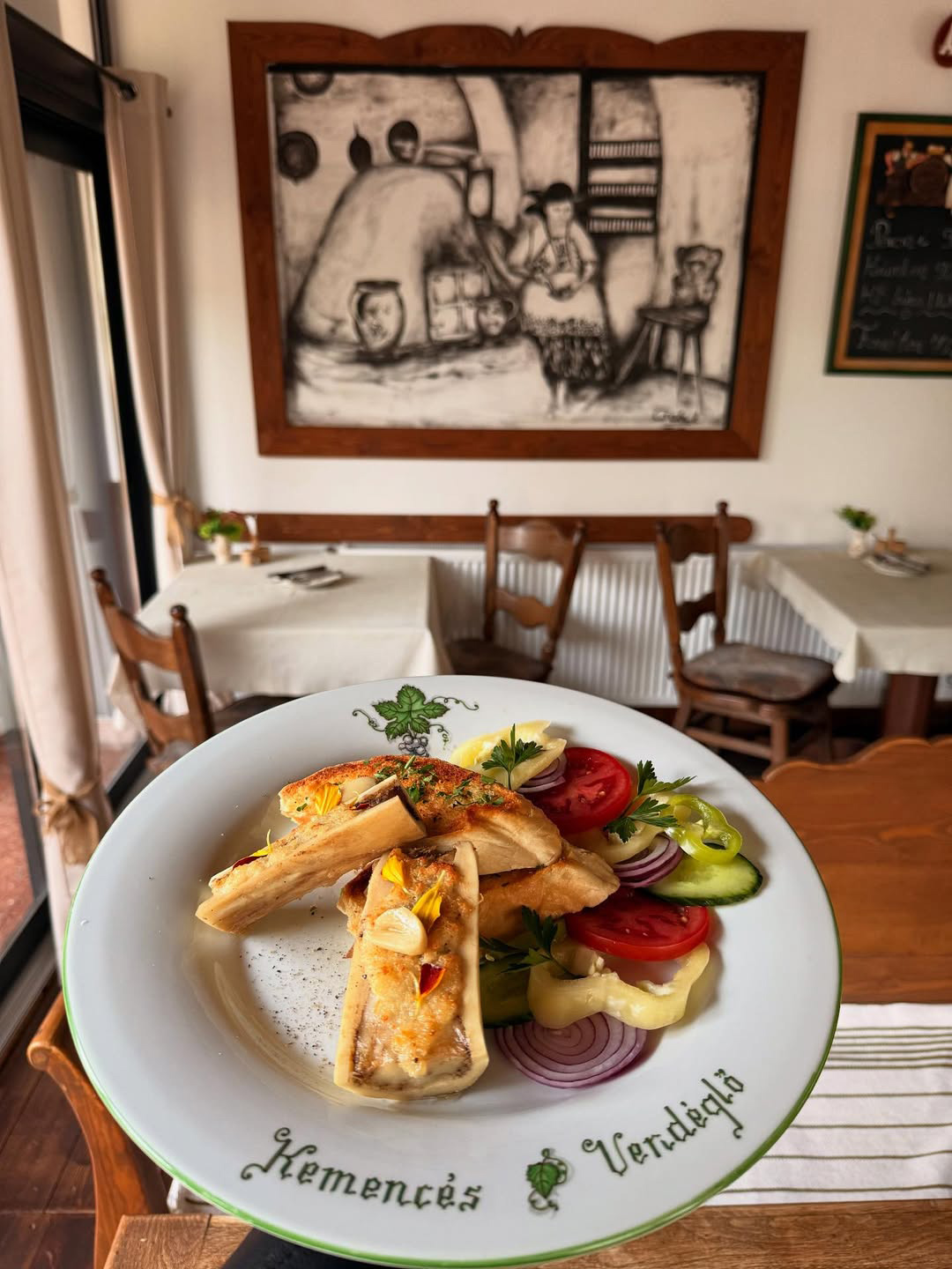 Étlapunk fő célja a kultikus magyar ízvilág bemutatása illetve a már feledésbe merülő tradicionális ételek újragondolása. A konyhánk egy nagy kemencével büszkélkedhet, ahol hagyományos módon sütjük a kenyereket, csülköt, csigánypecsenét, házi réteseket, legyen az sós vagy édes és még sok más ínyencséget. A legízletesebb ezek közül a marhahúsleves, mely egész éjszaka a parázs melegében varázsolja egybe a páratlan ízt. Étlapunkban a szezonális ajánlatok mellett megtalálja vegetáriánus, liszt-, és tejmentes ételeinket is. Tekintettel a családi vállalkozásra, a konyhát a fiunk vezeti, aki 5 éves külföldi tapasztalatait csempészi be a magyar konyha remekeibe. Számára a legfontosabb az anyag, az íz, a szín,és a textúra kompozíciója, melyet fejben megalkot. A kreativitása mint ízben, mint formailag határtalan, ezért az étlapban folyamatosan frissülnek a szezonális ajánlatok, hiszen számára a legfontosabb a vendég maximális elégedettsége.